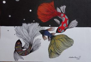 ಶ್ರೀಮತಿ ರೂಪ ಹಾಸನ ರವರು ಚಿತ್ರಕಲಾ ಪ್ರದರ್ಶನವನ್ನು ಉದ್ಘಾಟಿಸಿ ಮಾತನಾಡುತ್ತಾ ಬಿ.ಎಸ್. ದೇಸಾಯಿಯವರ ಕುಟುಂಬ ಕಲಾಕ್ಷೇತ್ರಕ್ಕೆ ಸಲ್ಲಿಸಿರುವ ಸೇವೆಯನ್ನು ಸ್ಮರಿಸಿದರು. ದೇಸಾಯಿಯವರ ಕಲಾಸೇವೆಯ ಮುಂದುವರೆದ ಭಾಗವಾಗಿ ಮೈಸೂರಿನ ಕಲಾವಿದೆ ಶ್ರೀಮತಿ ಶೋಭರಾಣಿ ಜಿ. ರವರ ಕಲಾ ಪ್ರದರ್ಶನ ಏರ್ಪಡಿಸಿದ್ದಕ್ಕೆ ಹಾಸನದ ಜನತೆಯ ಪರವಾಗಿ ಧನ್ಯವಾದ ಸಲ್ಲಿಸಿದರು. ಶೋಭರಾಣಿ ಜಿ. ರವರ ಕಲಾಕೃತಿಗಳನ್ನು ಮೊದಲ ಬಾರಿಗೆ ವೀಕ್ಷಿಸಿದಾಗ ರೋಮಾಂಚನವಾಗುತ್ತದೆ. ಕಲಾಪ್ರದರ್ಶನದ ಶೀರ್ಷಿಕೆ ‘ಮತ್ಸ್ಯ ಹೆಜ್ಜೆ’ ಮೀನಿಗೆ ಕಾಲು ಇಲ್ಲ ಕೈಗಳು ಇಲ್ಲ. ಆದರೆ ಮೀನಿಗೆ ಚಲನೆ ಇದೆ. ಇದನ್ನು ರೂಪಕಾತ್ಮಕವಾಗಿ ನೋಡಿದಾಗ, ಜೀವನ ಕ್ರಮದ ವೈಭವೀಕರಣ. ಅದರ ಪ್ರತಿಯೊಂದು ಜೀವನ ಕ್ರಮದ ದಾಖಲೀಕರಣ ಕಾಣುತ್ತದೆ. ಯಾವುದೇ ಕಲೆಗಳಿಗೆ ಹಾಗೂ ಕವಿತೆಗಳಿಗೆ ಮೂರ್ತರೂಪವಿರುವುದಿಲ್ಲ. ಅಮೂರ್ತ ರೂಪ ಇದ್ದಷ್ಟು ನೋಡುಗನು ಅದರ ಆಳಕ್ಕೆ ಇಳಿಯುತ್ತಾನೆ ಮತ್ತು ವಿಶ್ಲೇಷಣೆ ಮಾಡಲು ಸಾಧ್ಯವಾಗುತ್ತದೆ. ಈ ಹಿನ್ನಲೆಯಲ್ಲಿ ಶೋಭರಾಣಿ ಅವರ ಚಿತ್ರಗಳು ಒಂದಕ್ಕಿಂತ ಒಂದು ವಿಭಿನ್ನವಾಗಿದ್ದು ಆಳಕ್ಕಿಳಿದು ನೋಡುವಂತೆ ಮಾಡುತ್ತವೆ. ಕಾಡುತ್ತವೆ. ಆಕ್ವೆರಿಯಂ ಒಳಗಿನ ಮೀನಿನಿಂದ ಪ್ರೇರಣೆ ಪಡೆದು ಚಿತ್ರಿಸಿದರೂ ಸಹ ಎಲ್ಲಿಯೂ ಕೂಡ ಆಕ್ವೆರಿಯಂ ಪರಿಕಲ್ಪನೆ ಬಾರದ ಹಾಗೆ ಚಿತ್ರಿಸಿದ್ದಾರೆ. ಇದು ಮೆಚ್ಚುವಂತದ್ದು. ತುಂಬಾ ಮುಕ್ತವಾಗಿ, ಸ್ವತಂತ್ರವಾಗಿ, ಸ್ವೇಚ್ಚೆಯಿಂದ, ಓಡಾಡುತ್ತಿರುವ ಮೀನುಗಳು ಕಾಣುತ್ತವೆ. ಇದನ್ನು ಒಂದು ಹೆಣ್ಣಿಗೆ ಹೋಲಿಸಿ ನೋಡುವುದಾದರೆ, ಯಾವುದೇ ಕವಿ, ಕಲಾವಿದ ಮುಕ್ತತೆಯನ್ನು ಹಾಗೂ ಸ್ವಾತಂತ್ರ್ಯವನ್ನು ಬಯಸುತ್ತಿರುತ್ತಾರೆ. ಸಮಾಜವು ಮಹಿಳೆಯ ಮೇಲೆ ಕಟ್ಟುಪಾಡುಗಳನ್ನು ಹೇರುತ್ತಿದ್ದು ಮಹಿಳೆ ಇದರಿಂದ ಬಿಡಿಸಿಕೊಳ್ಳುವ ಪ್ರಯತ್ನ ಮಾಡುತ್ತಾಳೆ. ಆದರೆ ಇದು ಗೋಚರವಾಗಿಯೇ ಇರಬೇಕೆಂದಿಲ್ಲ. ಸೃಜನಶೀಲ ಅಭಿವ್ಯಕ್ತಿಯಲ್ಲಿ ಅವು ಗೋಚರವಾಗುತ್ತವೆ. ಕವಿತೆ ಹಾಗೂ ಚಿತ್ರಗಳು ತುಂಬಾ ಹತ್ತಿರದ ಸಂಬಂಧ ಹೊಂದಿರುತ್ತವೆ. ಇವರ ಚಿತ್ರಗಳ ಪರಿದಿಯಲ್ಲಿ ಬೇರೆ ಬೇರೆ ಆಯಾಮಗಳನ್ನು ಕಾಣಬಹುದು. ಇದನ್ನು ಮೀರಿ ನೋಡುವುದಾದರೆ ಮೀನುಗಳು ಸ್ವತಂತ್ರವಾಗಿ ಬದುಕಲು ಹಾತೊರೆಯುತ್ತಿರುವುದು ಗೋಚರಿಸುತ್ತದೆ. ಇವರ ಕೃತಿಗಳಲ್ಲಿ ಒಗ್ಗೂಡಿಕೆ , ಸಾಮರಸ್ಯ , ಸೌಮ್ಯತೆ , ಸಮಾನತೆ , ಕೂಡಿ ಬಾಳುವಿಕೆ ಸೂಚಿಸುತ್ತದೆ ಎಂದರು.