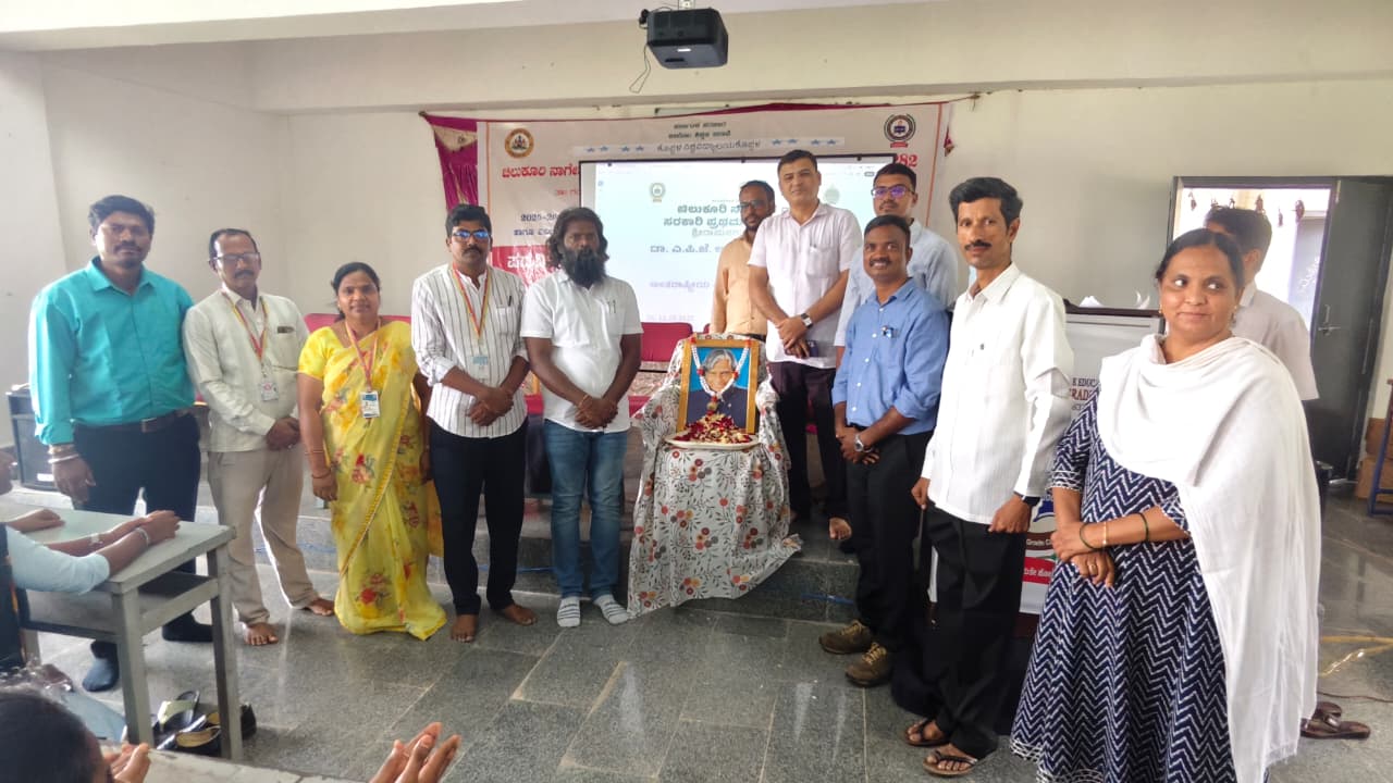 ನಂತರ ಕಾಲೇಜಿನ ಸಭಾಂಗಣದಲ್ಲಿ ಮಾಜಿ ರಾಷ್ಟ್ರಪತಿಗಳಾದ ಡಾ. ಎ.ಪಿ.ಜೆ. ಅಬ್ದುಲ್ ಕಲಾಂ ಅವರ ಜಯಂತಿಯ ಅಂಗವಾಗಿ ಅಂತಾರಾಷ್ಟ್ರೀಯ ವಿದ್ಯಾರ್ಥಿ ದಿನಾಚರಣೆ ಕಾರ್ಯಕ್ರಮವನ್ನು ಹಮ್ಮಿಕೊಳ್ಳಲಾಗಿತ್ತು. ಈ ಕಾರ್ಯಕ್ರಮದಲ್ಲಿ ಕಾಲೇಜಿನ ಪ್ರಾಂಶುಪಾಲರಾದ ಪ್ರೊ. ಕರಿಗೂಳಿ ಅವರು ಮಾತನಾಡುತ್ತಾ ಕಲಾಂ ಜೀ ರವರ ಬಹುಮುಖ್ಯ ಹೇಳಿಕೆಯಾದ ‘ ಕನಸೆoದರೆ ನಿದ್ರೆಯ ಕಾಣುವುದು ಅಲ್ಲ ಬದಲಾಗಿ ನಿಮ್ಮನ್ನು ನಿದ್ರಿಸಲು ಬಿಡಲಾರದ್ದು ಕನಸು ಆದುದರಿಂದ ಕನಸುಗಳನ್ನು ಹಗಲು ಅಥವಾ ರಾತ್ರಿ ಕಾಣದೆ ದೊಡ್ಡ ಮಟ್ಟದಲ್ಲಿ ವಿಚಾರ ಮಾಡಿ ಅಂತಹ ಸಾಧನೆಗೋಸ್ಕರ ನಿಮ್ಮ ಸುಖನಿದ್ರೆ ತ್ಯಾಗ ಮಾಡಿ ಸಾಧಕರಾಗಬೇಕು ಎಂದು ವಿದ್ಯಾರ್ಥಿಗಳಿಗೆ ಕರೆ ನೀಡಿದರು. ವಿದ್ಯಾರ್ಥಿಗಳು ತಮ್ಮ ಬದುಕಿನಲ್ಲಿ ಸಾಧಕರಾಗಿ ಹೊರಹೊಮ್ಮುವುದರಿಂದ ನಿಮ್ಮ ಬದುಕು ಹಸನಾಗುತ್ತದೆ ಹಾಗೂ ಕಾಲೇಜಿಗೆ ಗೌರವ ಬರುತ್ತದೆ. ನಿಮ್ಮ ಗುರಿಮುಟ್ಟಲು ಕಾಲೇಜಿನ ಸಕಲ ಸಂಪನ್ಮೂಲಗಳ ಸದ್ಬಳಕೆ ಮಾಡಕೊಳ್ಳಲು ಕಾಲೇಜಿನ ಎಲ್ಲಾ ಪ್ರಾಧ್ಯಾಪಕರು, ಆಡಳಿತ ಸಿಬ್ಬಂದಿ, ಗ್ರಾಮದ ಶಿಕ್ಷಣ ಪ್ರೇಮಿಗಳು, ಸ್ಥಳೀಯ ರಾಜಕೀಯ ನಾಯಕರು ಹಾಗೂ ಕ್ಷೇತ್ರದ ಶಾಸಕರು ಸೇರಿದಂತೆ ಎಲ್ಲರನ್ನೂ ಬಳಸಿಕೊಳ್ಳಿ ಎಂದು ಪ್ರಾಂಶುಪಾಲರಾದ ಕರಿಗೂಳಿ ಅವರು ತಿಳಿಸಿದರು.