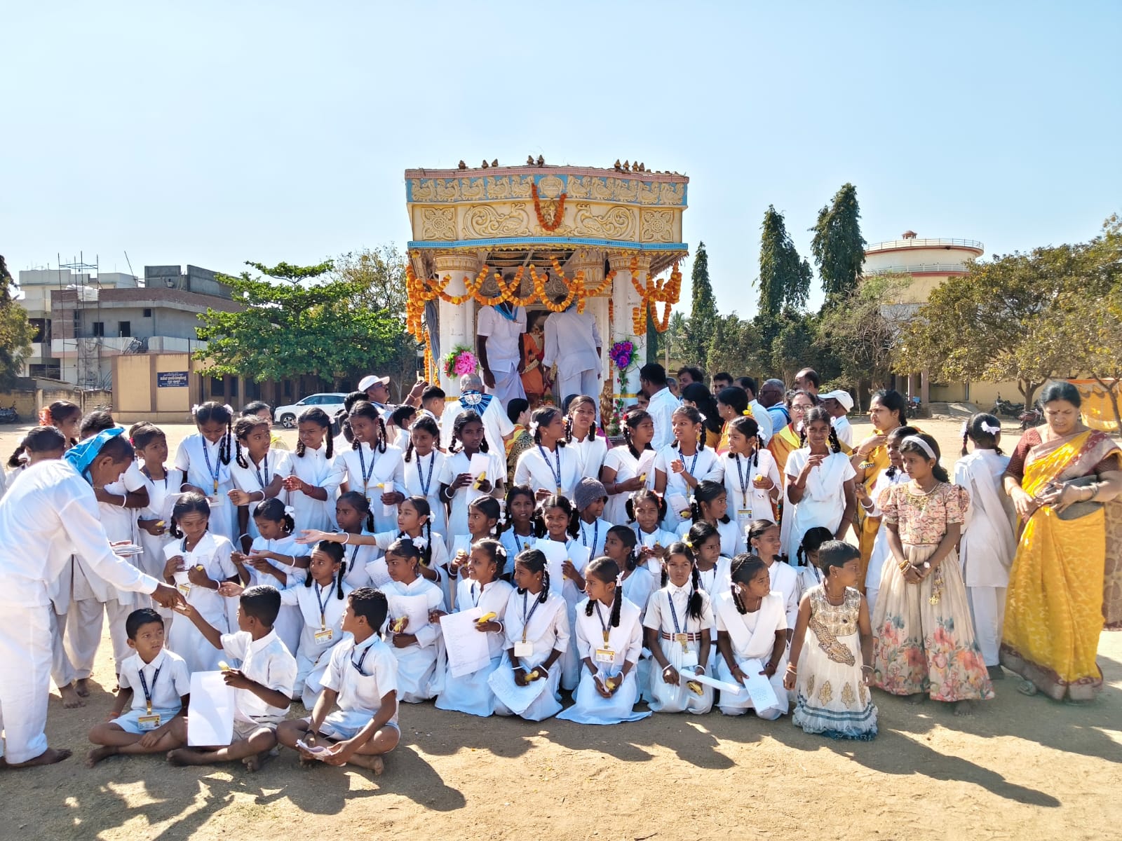 ಕಾರ್ಯಕ್ರಮದಲ್ಲಿ ಉಪಸ್ಥಿತರಿದ್ದ ಪದ್ಮನಾಭಯ್ಯ ಅವರು ಹಿತನುಡಿ ನುಡಿದರು ಹಾಗೂ ಮಹಾಮಂಗಳಾರತಿ ನೆರವೇರಿಸಿದರು. ಶಾಲಾ ಮುಖ್ಯ ಶಿಕ್ಷಕರಾದ ಶ್ರೀನಿವಾಸ ಕುಲಕರ್ಣಿ ಮತ್ತು ರಂಗಪ್ಪನವರು ಉಪಸ್ಥಿತರಿದ್ದರು. ನಂತರ ಸ್ವಾಮಿಯವರಿಗೆ ಬ್ರಹ್ಮ ಪೀಠದೊಂದಿಗೆ ನೈವೇದ್ಯ ಸಲ್ಲಿಸಿ, ಪ್ರಸಾದ ವಿತರಣೆ ಮಾಡಲಾಯಿತು.